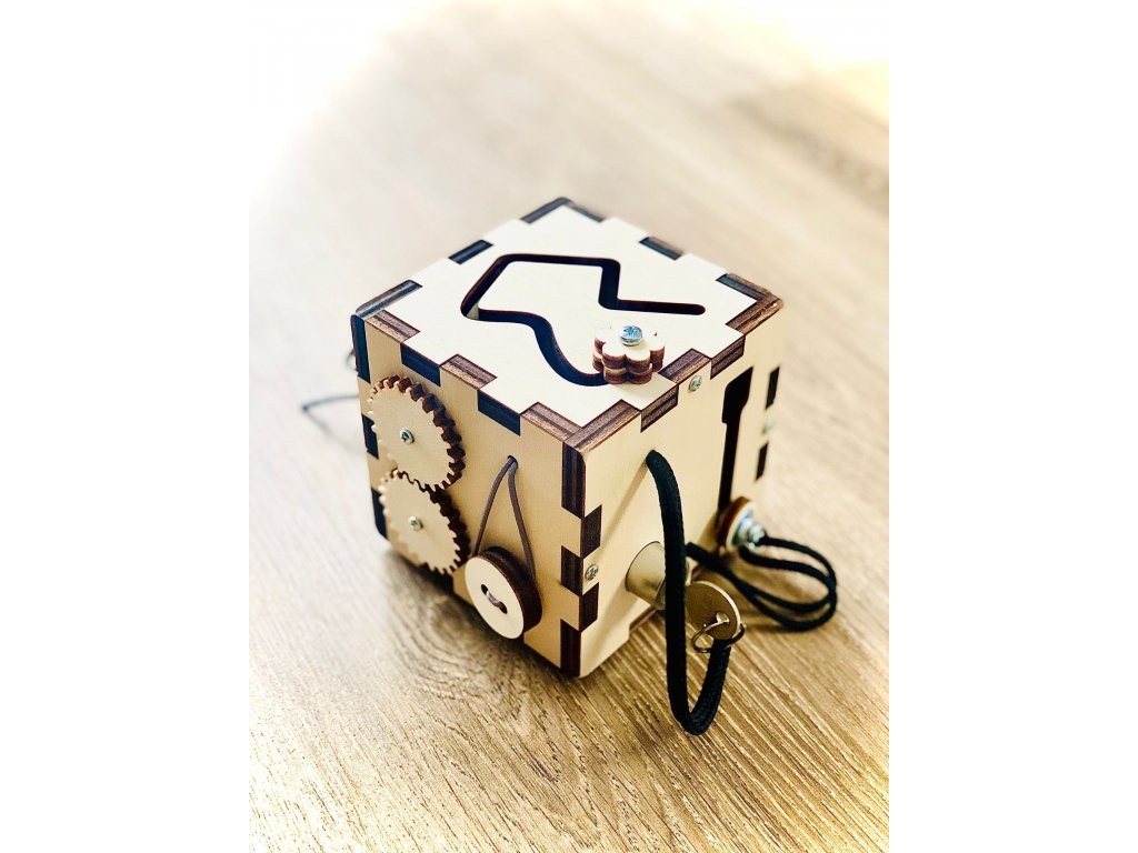 Tato activity kostka, nebo-li busy cube je skvělým společníkem nejen na cestování. Uchvátí dítě, které postupně prozkoumává jednotlivé složky a poznává tak fungování světa a objevuje jemnou motoriku, logiku a koncentraci. Podpoří rozvoj jejich samostatnosti a sebevědomí.