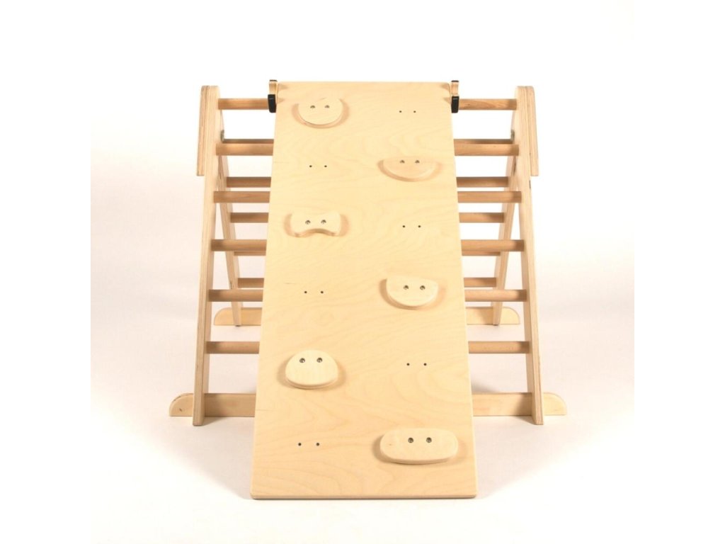Deska je z jedné strany hladká a z druhé strany je 6 rovných stupínků. Dokupte si horolezecké chyty a místo rovných stupínků namontujte ty. Vytvoříte tak zajímavou "horolezeckou" desku.
