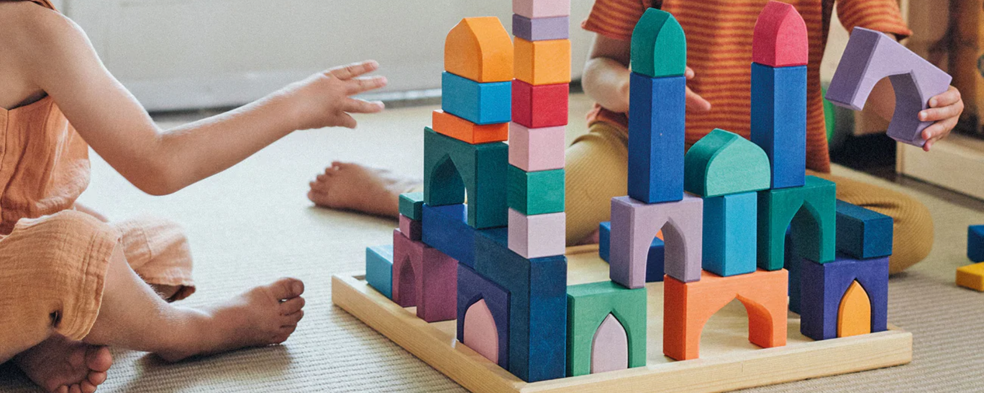 Dřevo je navíc přirozené, teplé a příjemné na dotek. Nepřehluší smysly blikáním a bzučivými zvuky, ale podporuje je: hmat, zrak, někdy i sluch při břinkání kostek o sebe. Stavění se tak stává nejen hrou, ale malým světem, ve kterém děti tvoří, zkoumají a rostou.