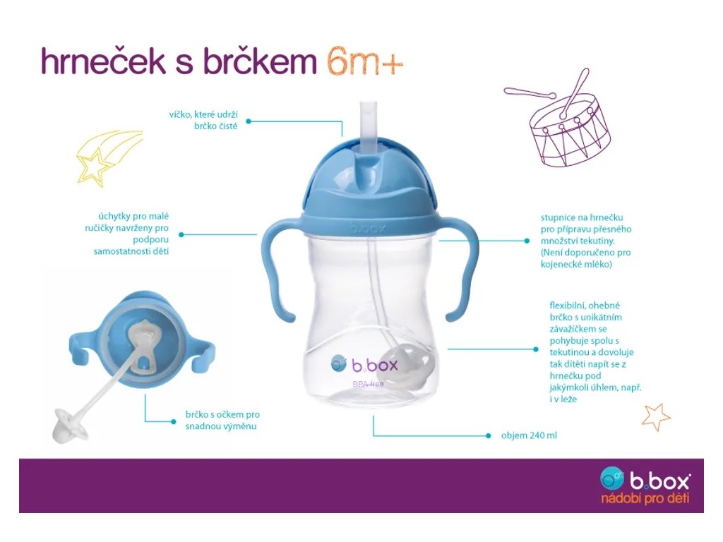 Oblíbený netekoucí hrneček se silikonovým brčkem pro děti od 6 měsíců Hrneček s brčkem australské značky b.box je oceňovaný dětmi, rodiči i odbornou veřejností!