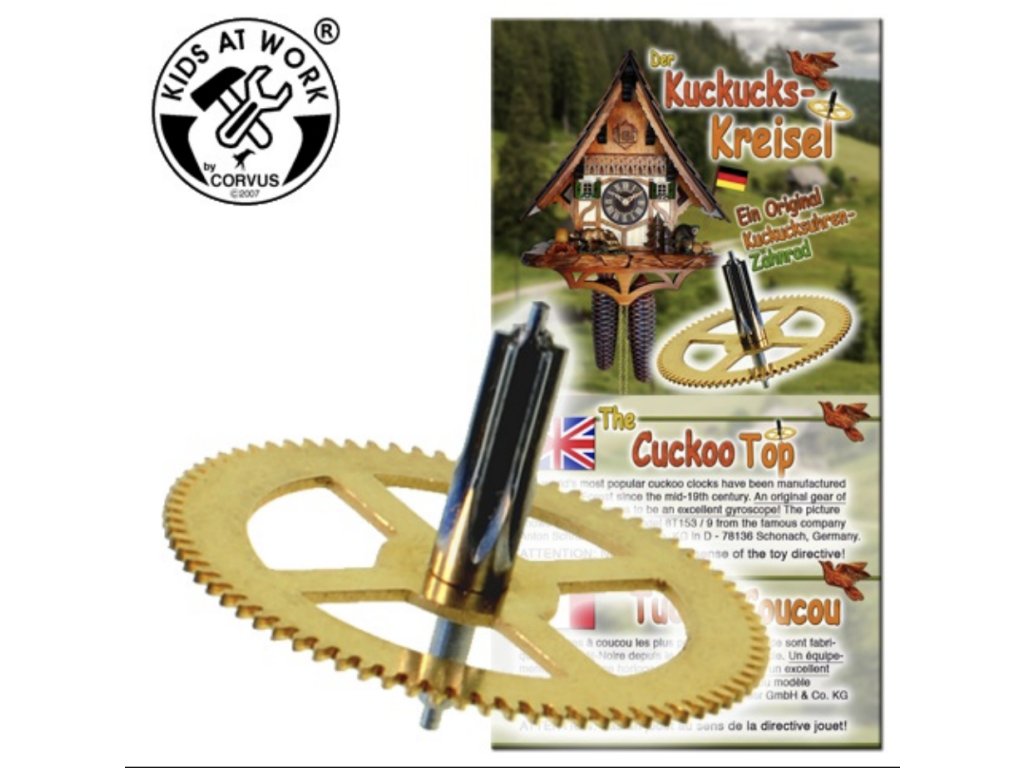 Originální ozubené kolo z kukačkových hodin ze Schwarzwaldu slouží jako skvělá hračka. Vysoká přesnost, s jakou je součást hodinového stroje vyrobena, zajišťuje mimořádně plynulý chod malého "kukátkového dřívka/hřídele". Ti, kteří nevlastní kukačkové hodiny, se tak mohou podílet na dlouhé tradici výroby hodinek v Černém lese.