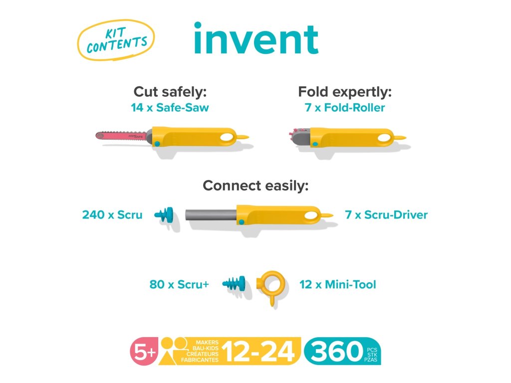 Nekonečná svět kartonového stavění. Základní stavební kámen pro každý prostor, kde se děti učí tvořením. Sada INVENT KIT v sobě ukrývá obrovský vzdělávací potenciál a je srdcem těch nejlepších tříd, dílen, knihoven i letních táborů.