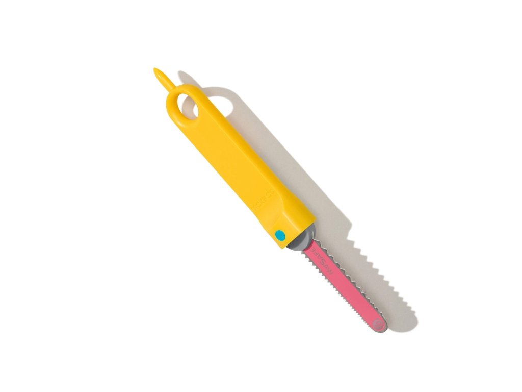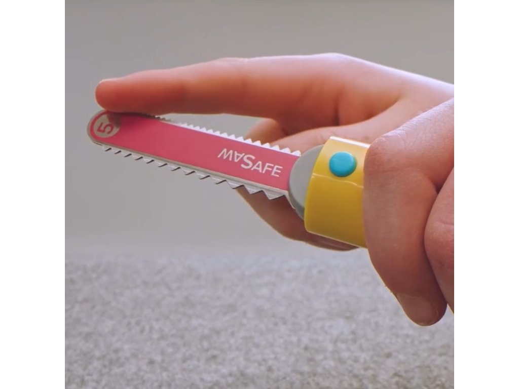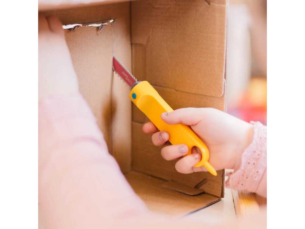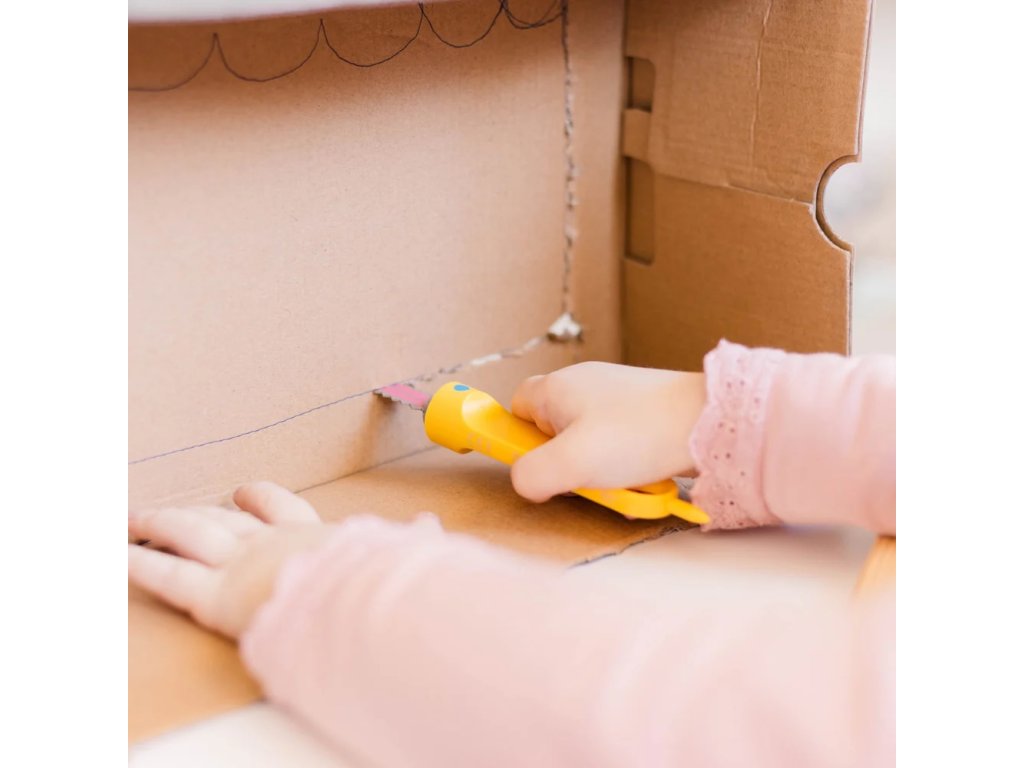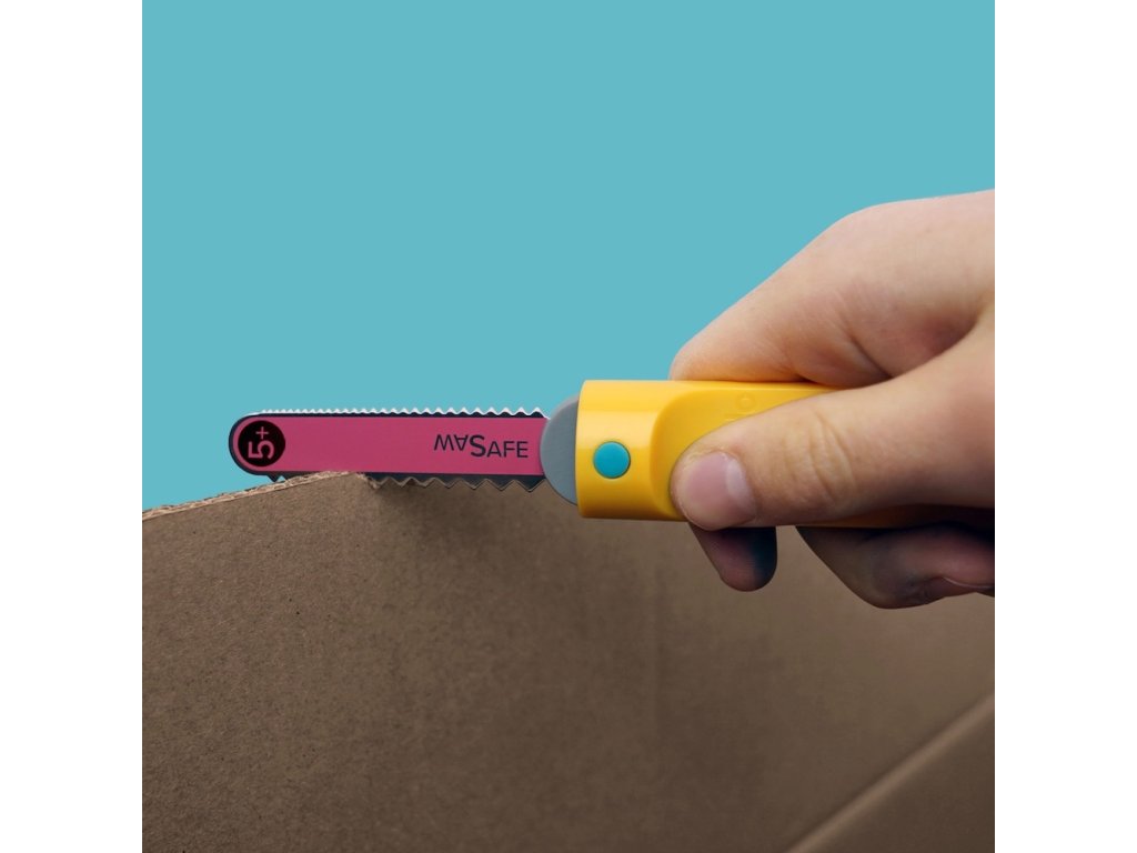 Ocelová čepel bez ostrých hran umožňuje rychlé řezání kartonu, nikoli prstů.