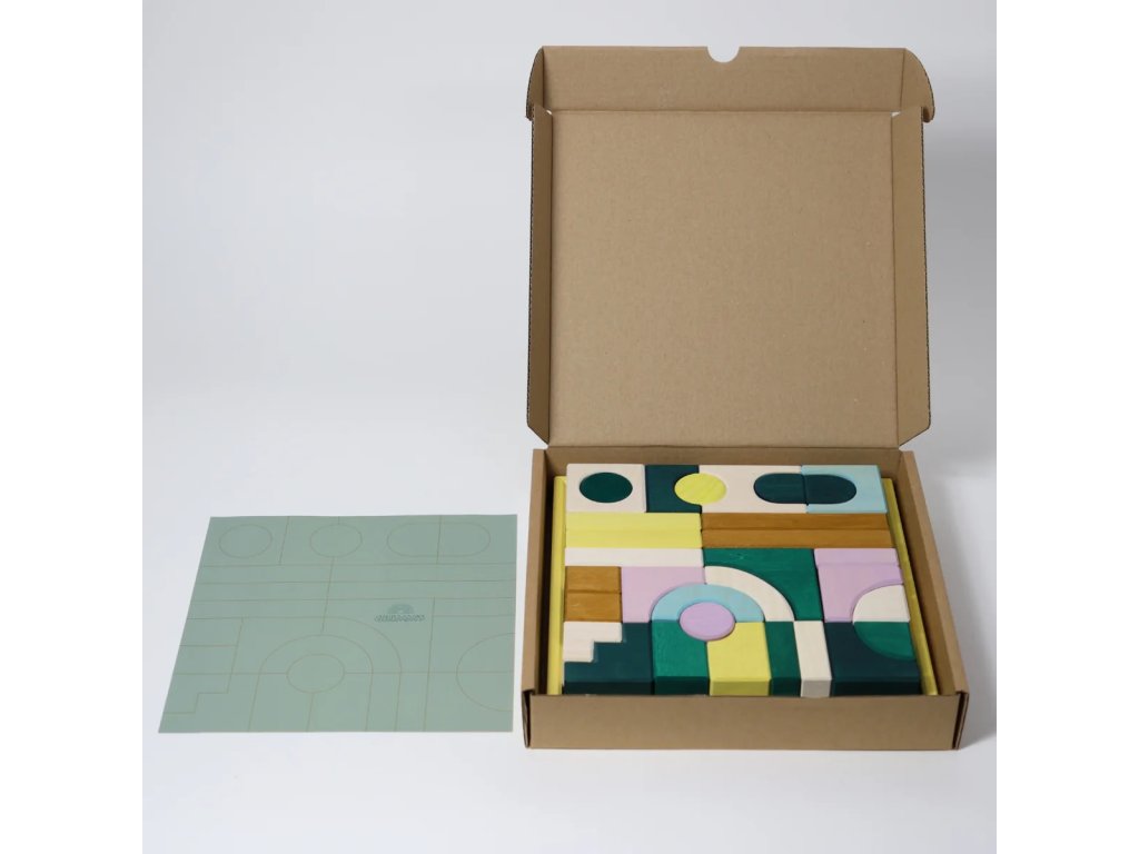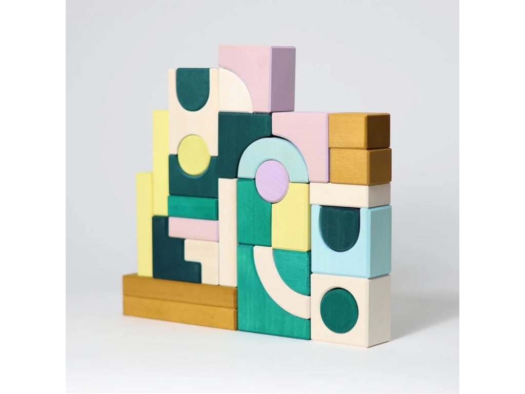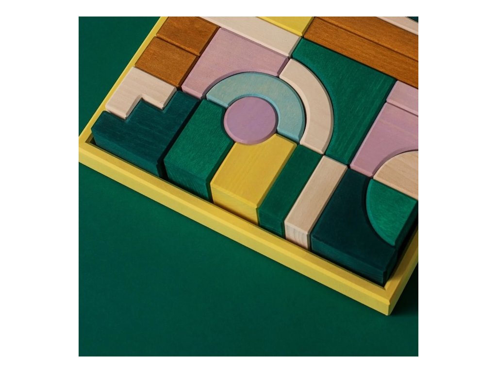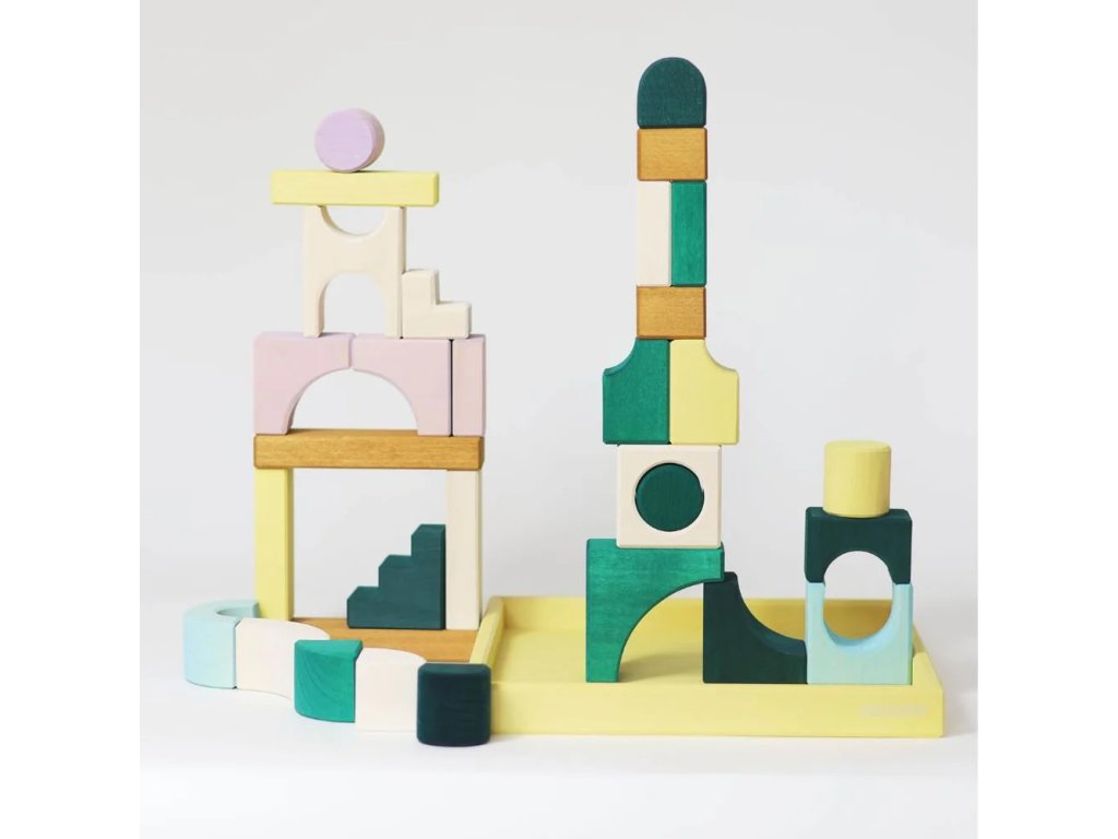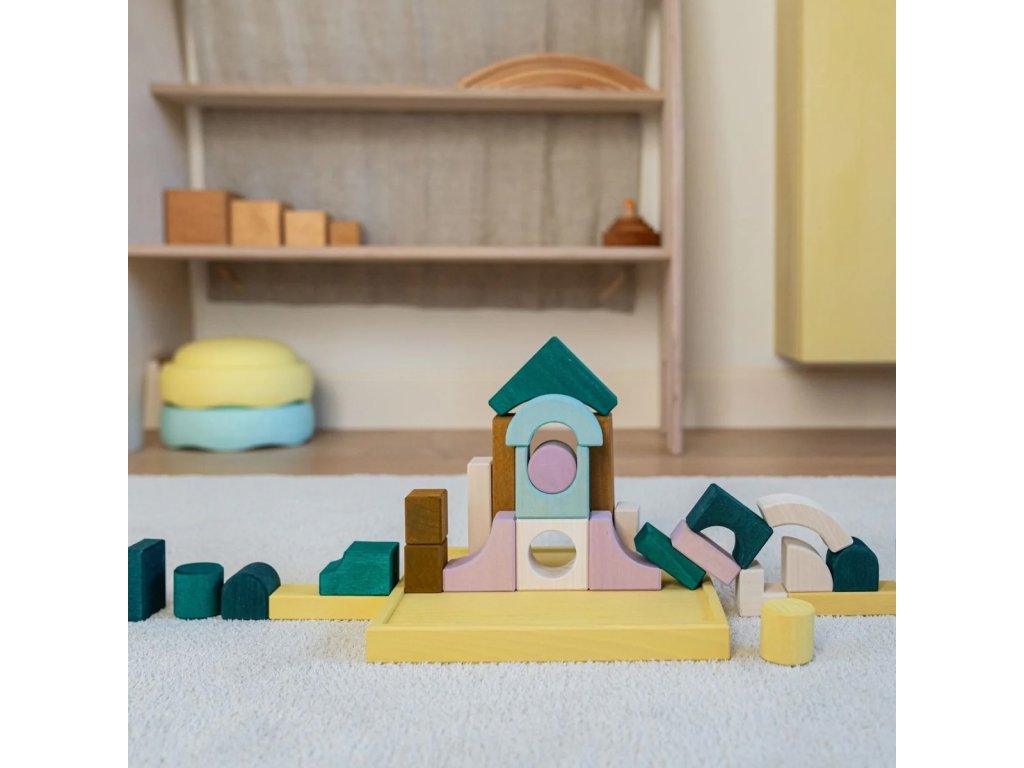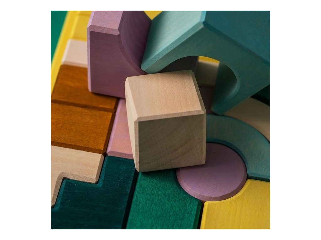 Stavebnice Pohyb přináší do světa dřevěných kostek prvek překvapení. Díky neotřelé kombinaci tvarů je tento set ideální pro experimentální stavění, které vybočuje ze zajetých kolejí klasické architektury. Základní stavební kameny jsou zde doplněny o unikátní, organické dílky, které při každém novém sestavení inspirují k jinému úhlu pohledu.