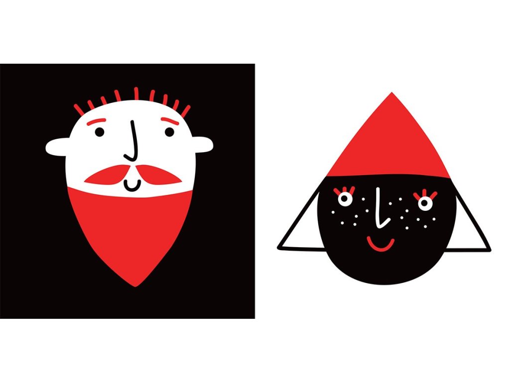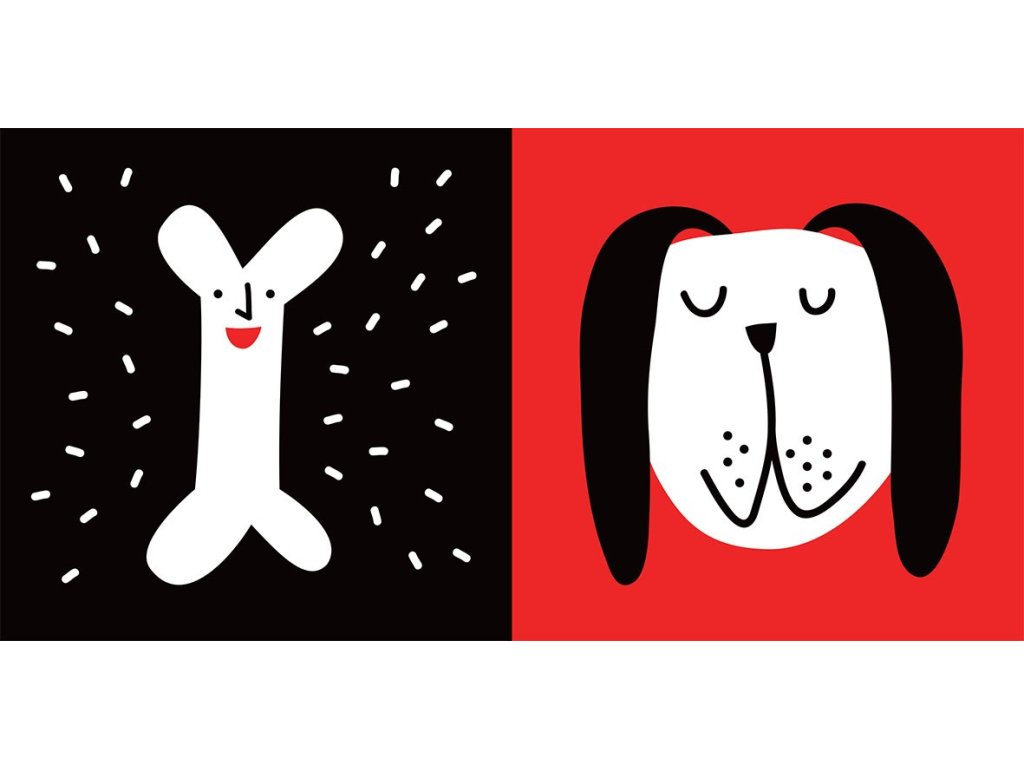 Leporelo pro nejmenší plné ostře kontrastních obrázků. Miminka ráda pozorují tváře, a tak se tu na ně usmívá banán a psí kost.