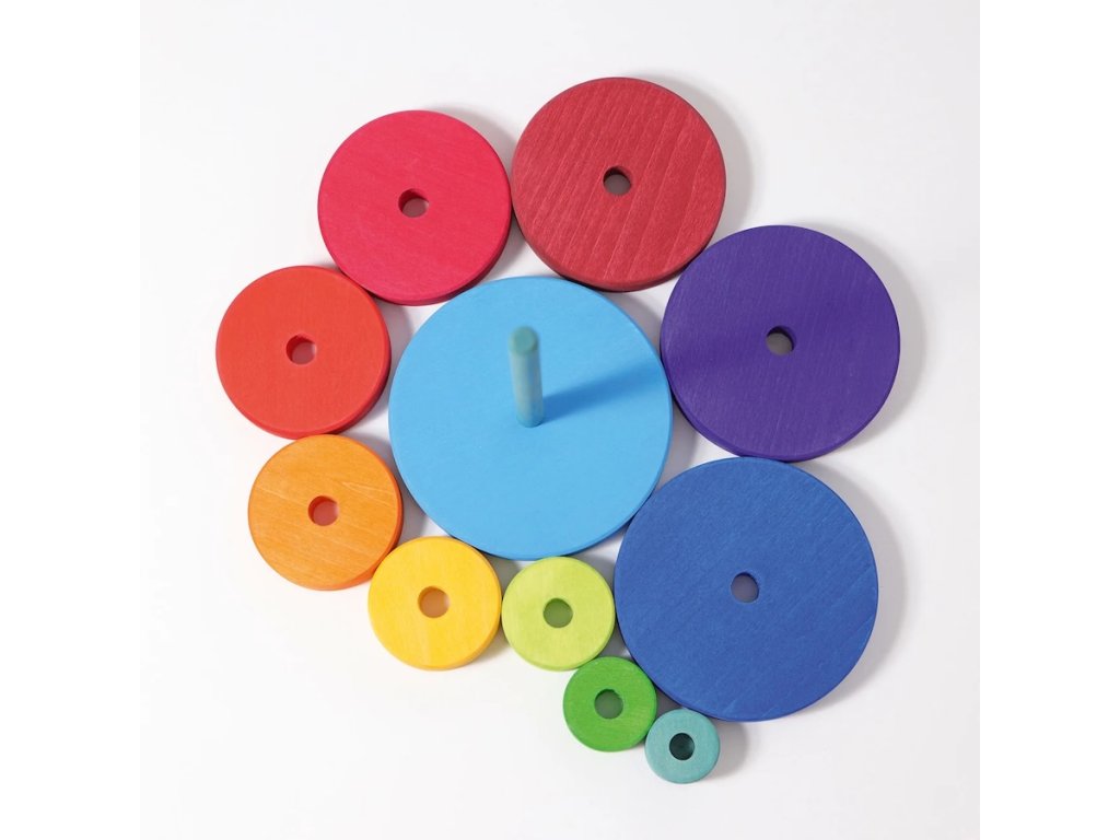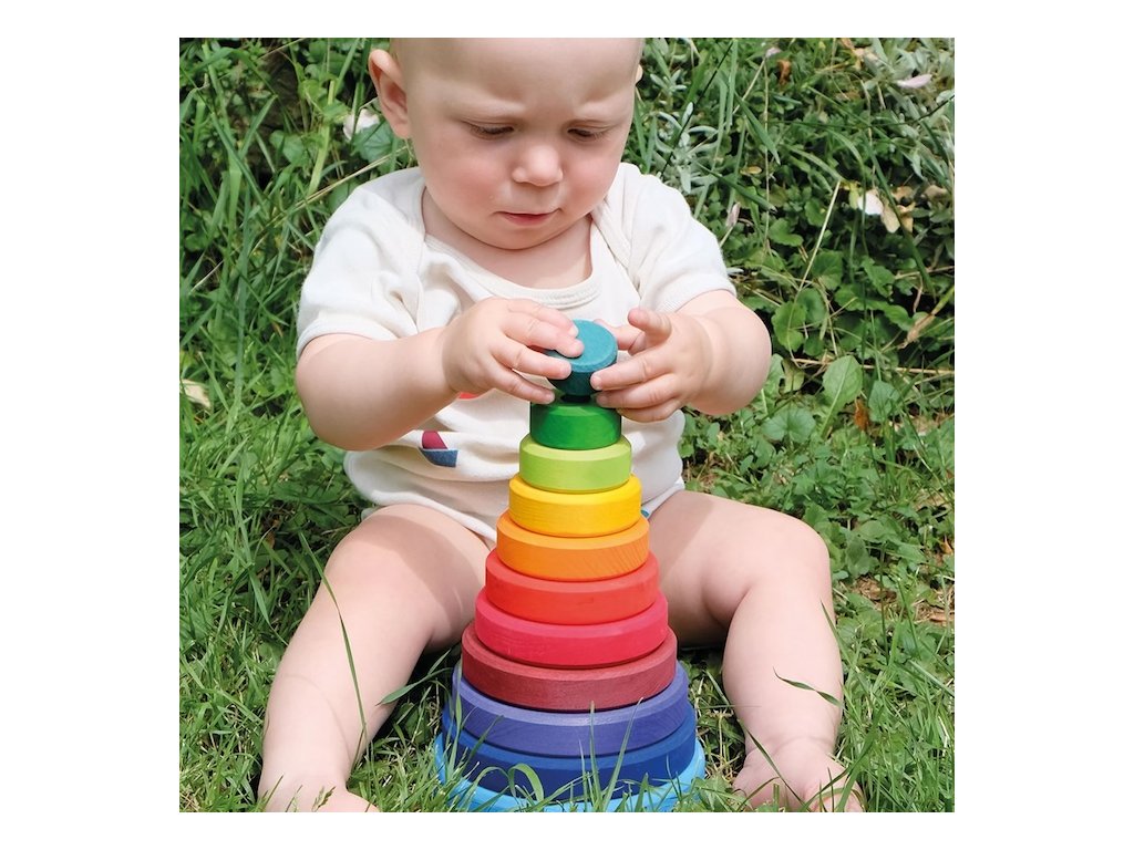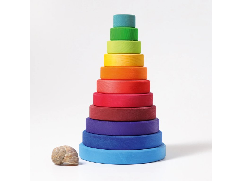 S velkou Kónickou stohovací věží si děti mohou třídit, skládat a stavět. Při skládání se stimuluje koordinace ruka-oko a trénuje se jemná motorika. Tento produkt je doporučený průvodcem "spielgut" (průvodce dobrými hračkami).