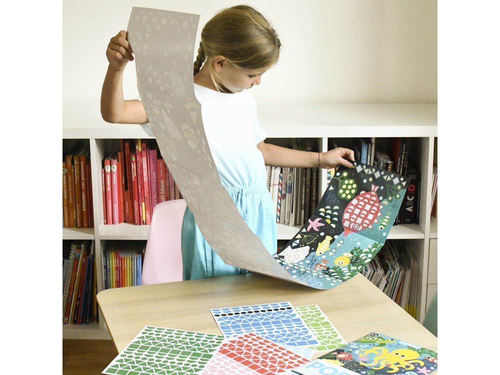 1 pozadí - panorama (140 x 25 cm) + 750 samolepek s motivem mořského světa to je zaručená zábava na spoustu hodin:-). Samolepky jsou znovusnímtelné. Pro děti 3-7 let.
