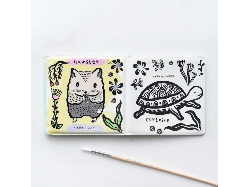 Knížka je mačkací, odolná a lehká. Každá černobílá bytost se promění v rukou dítěte a zaručí spoustu zábavy při koupání. Děti budou milovat, jak obrázky ožívají, když "malují" vodou, a vy budete milovat, že to nevyžaduje žádný nepořádek!
