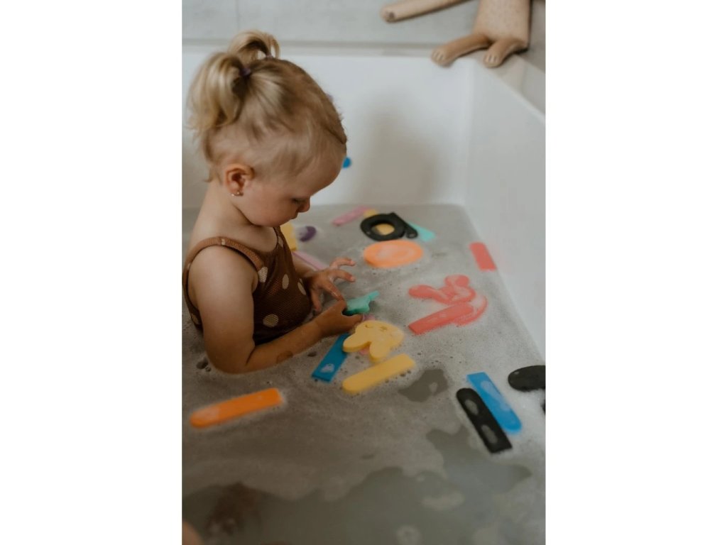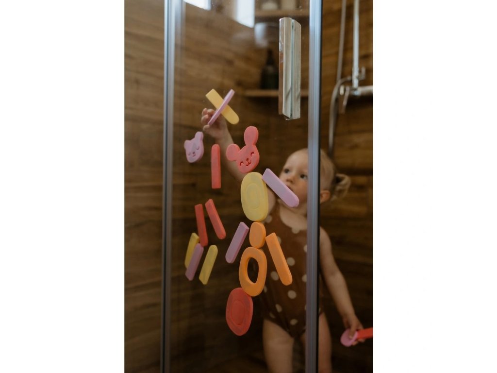 28 kusů roztomilých pěnových tvarů do vody. V tomto velkém balení najdete rozložené kamarády do barevných lehoučkých kousků / skládačky, která skvěle drží na vaně nebo kachličkách ve sprchovém koutě. Dá se snadno přichytit a následně sundat z jakéhokoliv nenasákavého povrchu.