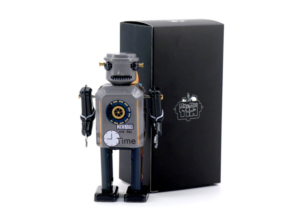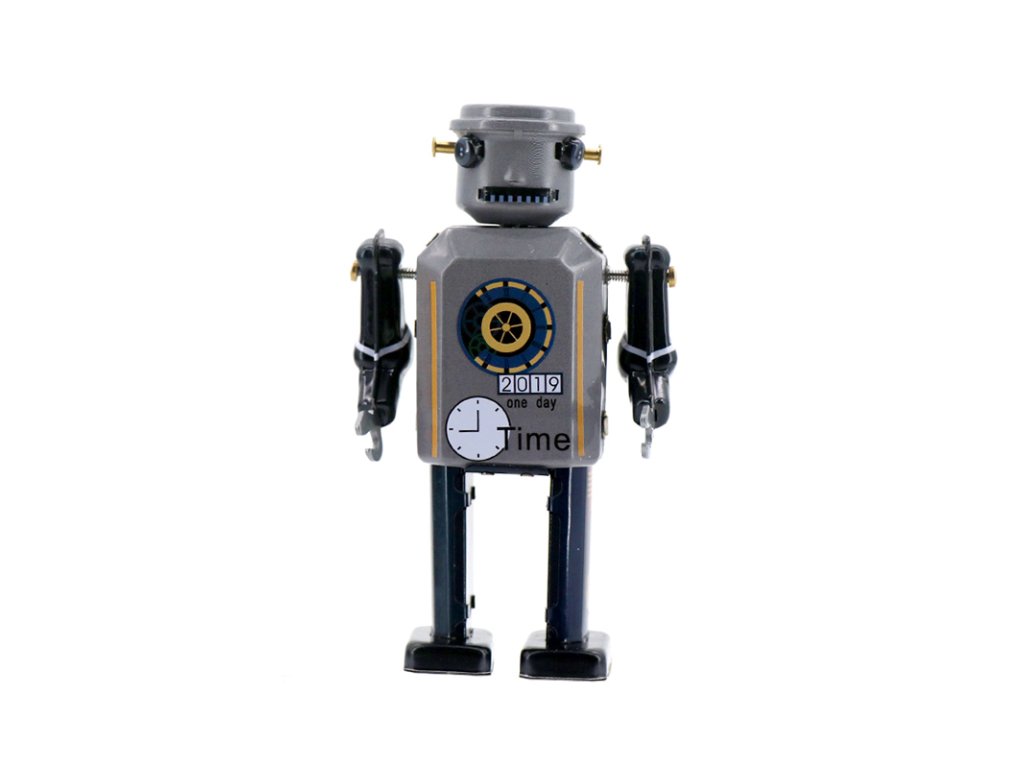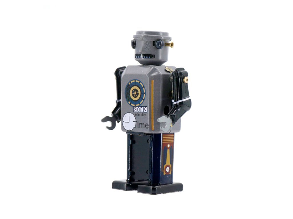 Kovová natahovací hračka na klíček. Roboti pro kluky i holky, které po natažení chodí.