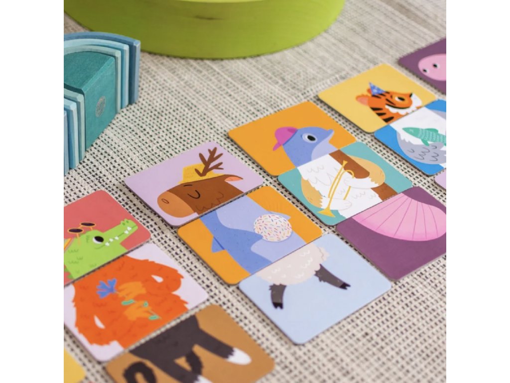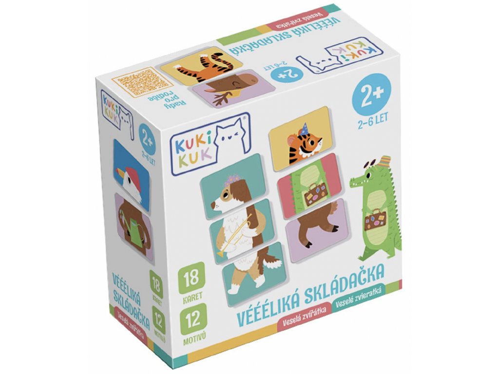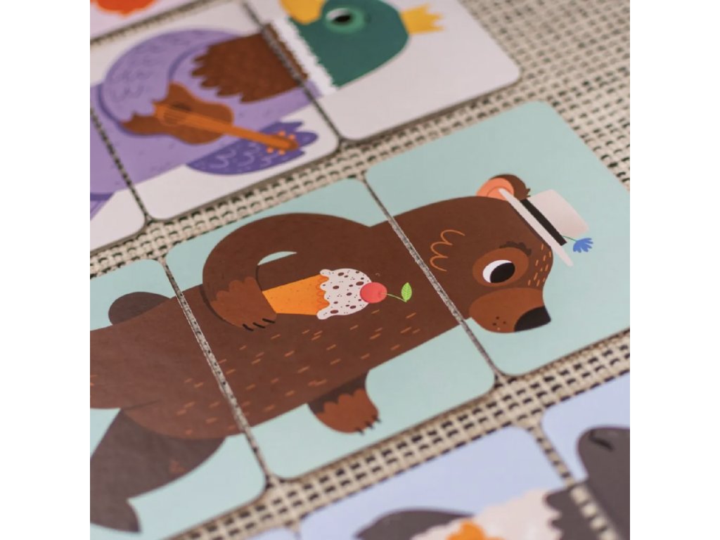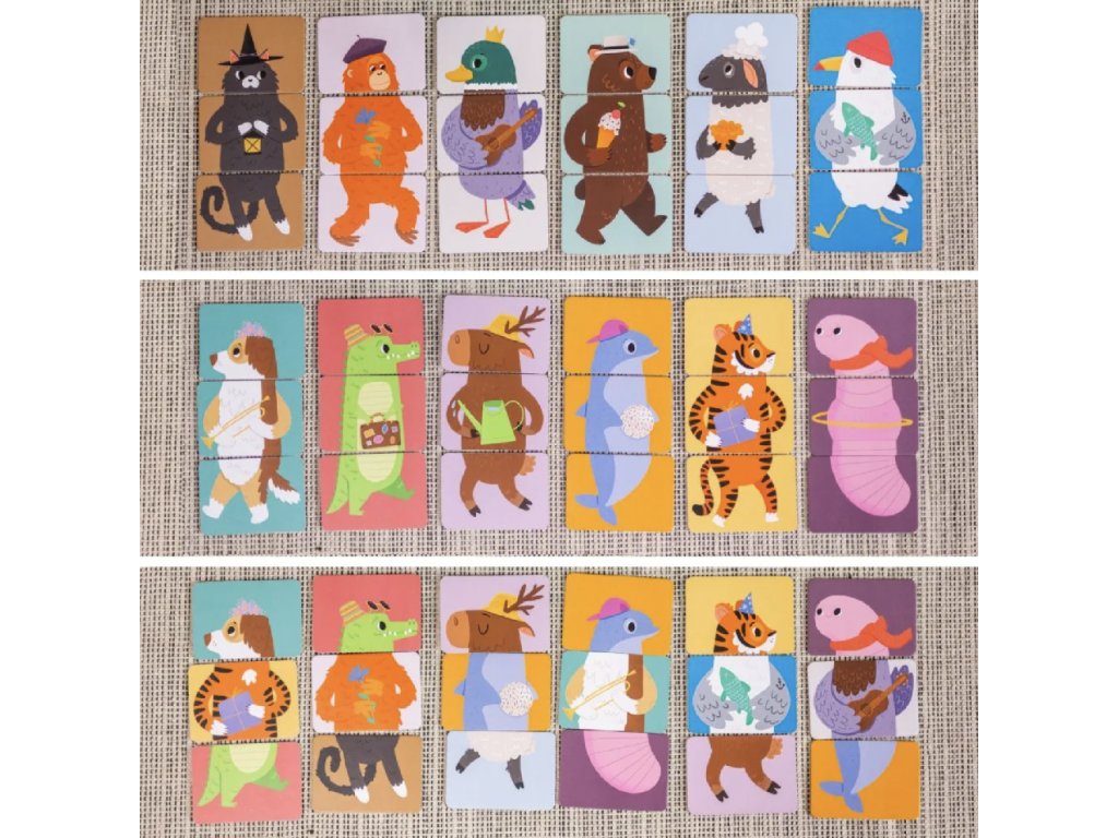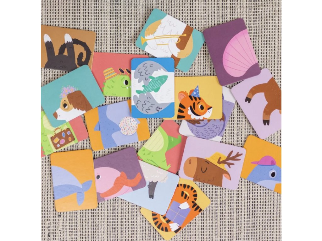 Zábavná dětská skládačka pro děti od 2 let podporuje kreativitu, představivost a jemnou motoriku. Krásné ilustrace zvířátek vytvořila výtvarnice Ema Sazama. Skládáním karet je možno vytvořit mnoho veselých kombinací zvířátek a trénovat tak ručičky i mozek. Povídejte si s dětmi o zvířátkách, předmětech na obrázcích, barvách...