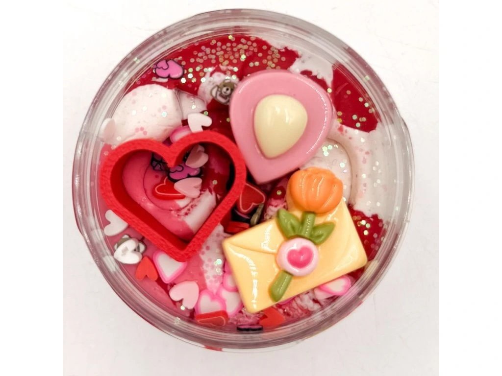 - doplňky pro radost: třpytky, konfety, vykrajovátko srdíčko, dekorace sladkost (různá), obálka
