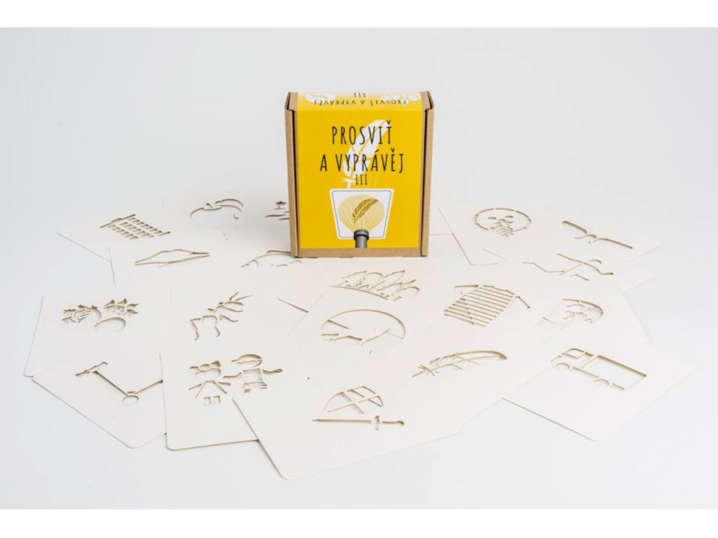 Tyto prosvěcovací kartičky slouží jako osnova pro vyprávění vlastních příběhů, podněcují fantazii, podporují slovní zásobu a baví celou rodinu. Kartičky prosvítíte baterkou, lampičkou nebo třeba mobilem. Rozvíjí slovní zásobu a fantazii. Způsob hraní je na vás!