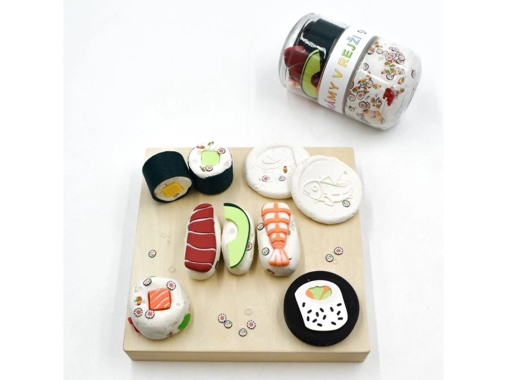 Staň se malým sushi mistrem a připrav si vlastní voňavou hostinu z modelíny! Děti si při tvoření roládek, nigiri a otiskování rybiček užijí hodiny klidné zábavy a procvičí fantazii i jemnou motoriku. Vše je přehledně zabalené a hraní probíhá bez nepořádku – ideální pro kreativní tvoření doma i na cestách.