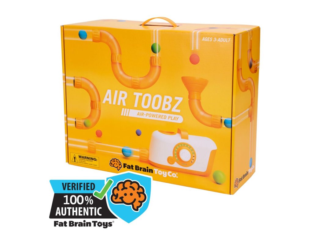 Air Toobz je bezpečný foukací přístroj pro děti, který vystřeluje pěnové míčky do bludiště trubek, které si dítě sestaví. Trubky a spojky lze spojit libovolným způsobem. Foukací přístroj má jednoduché tlačítko pro zapnutí/vypnutí a velký knoflík s LED indikátory pro nastavení síly proudění vzduchu.
