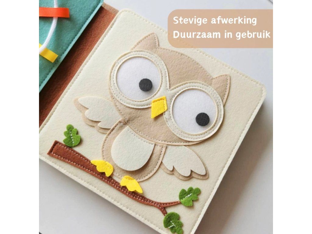 Rozvoj jemné motoriky: Bohatá paleta prvků jako jsou zipy, knoflíky, tkaničky a hry na přiřazování.