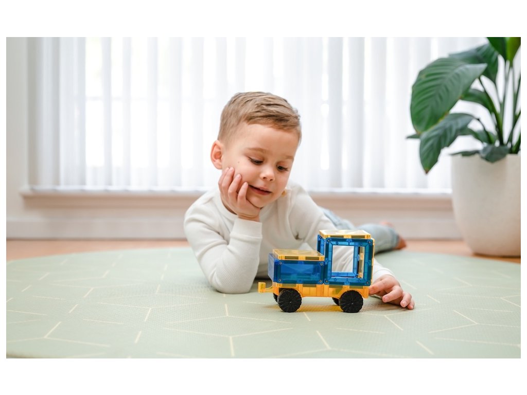 Dodejte své hře s magnetickými dílky nový rozměr a rozhýbejte svou fantazii! Sada CONNETIX 2 dílky Rainbow Car Pack obsahuje jednu modrou a jednu žlutou pohyblivou podložku s opravdovými gumovými koly a naším jedinečným zkoseným designem. Tato sada otevírá dětem nekonečné možnosti, jak navrhovat a vytvářet své vlastní pohyblivé stavby – od aut, náklaďáků, vlaků, autobusů, hasičských vozů, traktorů a vesmírných aut až po pohyblivé roboty, fantastická stvoření a mnoho dalšího!