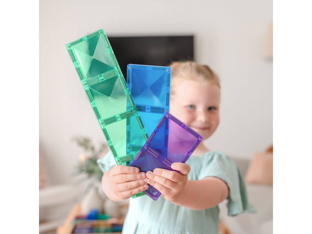 Sada s 18 duhovými obdélníky, dostupná v našich šesti zářivých duhových barvách a s naším jedinečným zkoseným designem, obsahuje tři velikosti obdélníků, které jsou navrženy tak, aby podpořily fantazii a kreativitu! Díky dlouhým a krátkým obdélníkům mohou děti prozkoumávat koncepty učení STEAM, jako je symetrie a vzory, a zároveň rozvíjet své designové a technické dovednosti. Tyto magnetické dílky pomohou dětem stavět větší a pevnější konstrukce a jsou ideální pro technické stavby a podporu kuličkových drah!