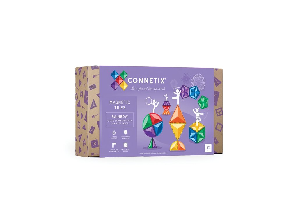 Jako dokonalý doplněk do rodiny CONNETIX, kompatibilní se stávajícími sbírkami magnetických dílků, podporuje sada Rainbow Shape Expansion Pack novou úroveň STEAM učení – bez námahy spojuje učení a zábavu. Doplňte tuto sadu o 212dílnou duhovou mega sadu CONNETIX nebo vytvořte nádherné barevné spektrum a přidejte zemité odstíny s 40dílnou pastelovou geometrickou sadou CONNETIX. Možnosti jsou nekonečné!