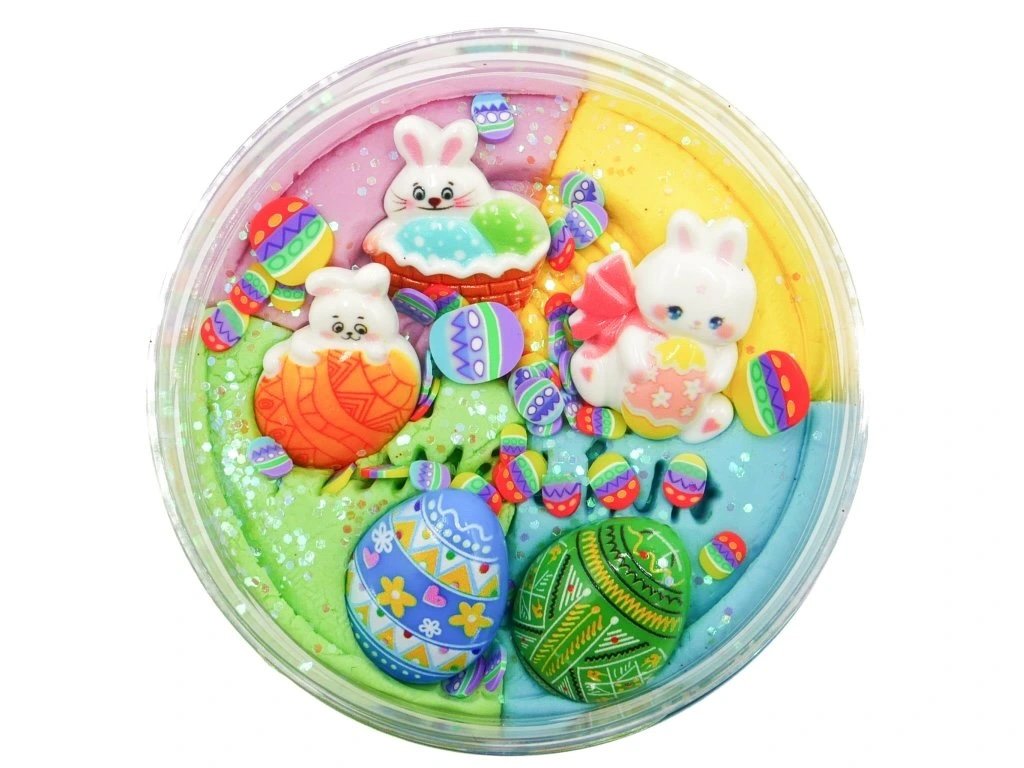 Bohatá výbava pro malé tvořivce: Sada obsahuje nejen modelínu, ale i třpytky, konfety a 5 kusů jarních dekorací, se kterými děti snadno vytvoří celý velikonoční příběh.