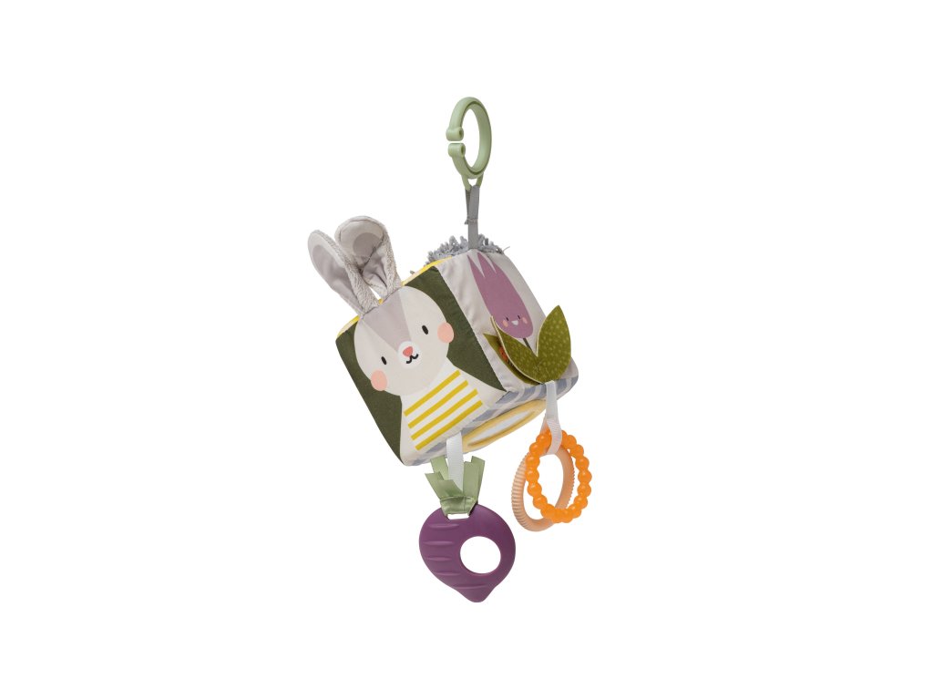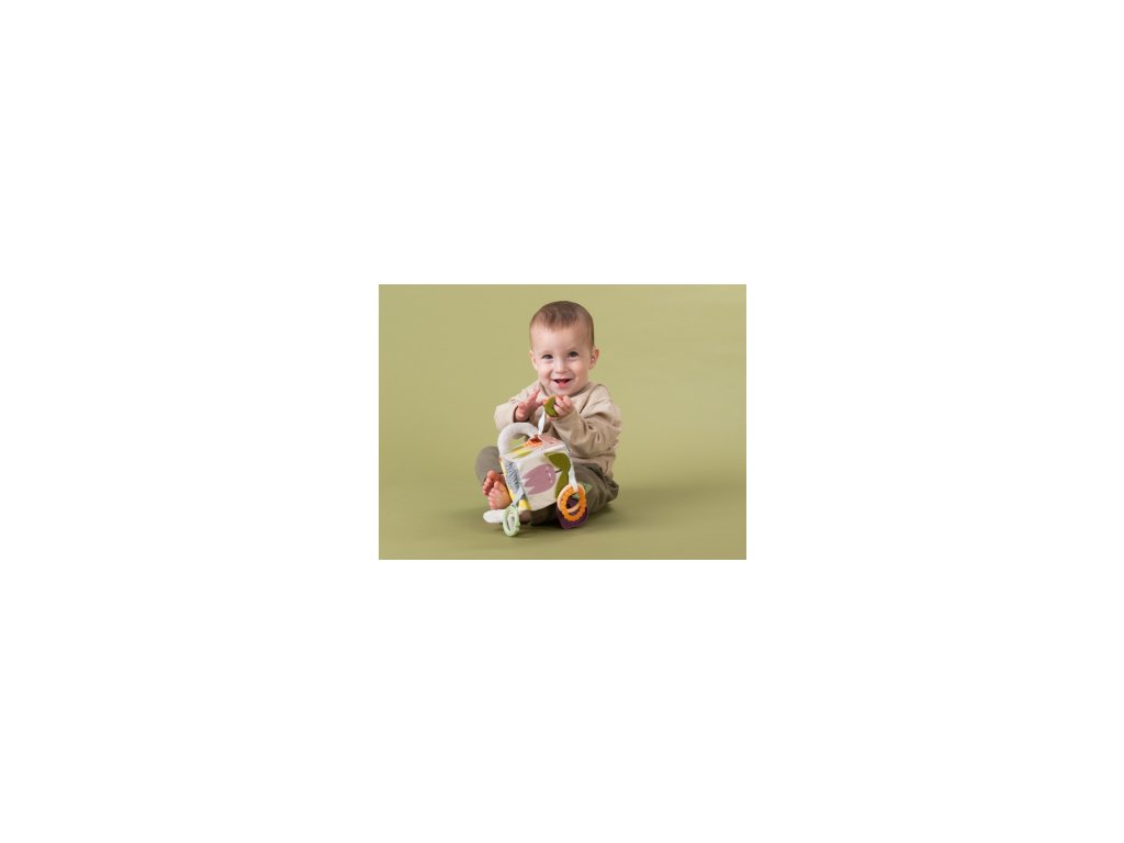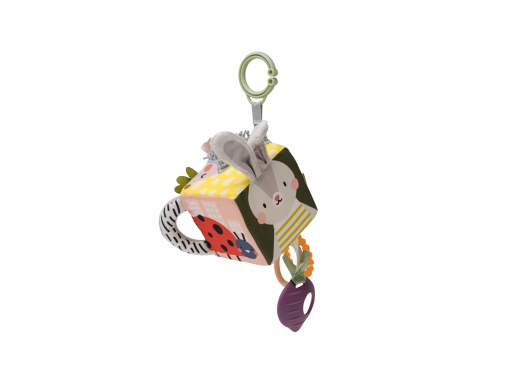 Hračka pro použití na postýlce, kočárku, autosedačce apod. Množství různých aktivit, překvapivé textury a obrázky pro zábavné hraní a zkoumání. Plastový kroužek pro snadné uchycení, zvuk zvonečku, textilní držadla, plastové kroužky, kousátko, bezpečné zrcátko, chrastítko.