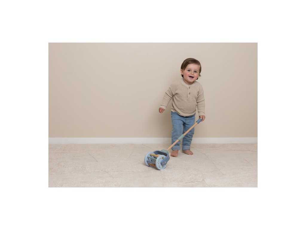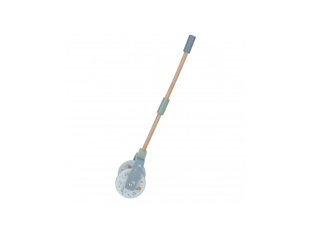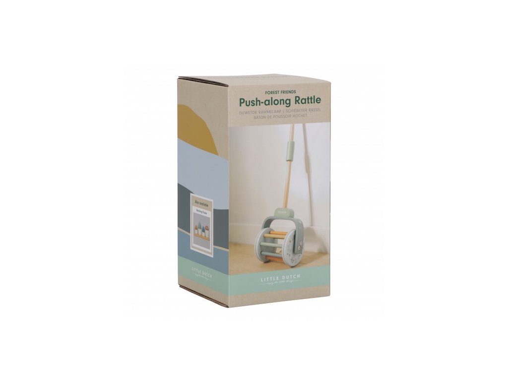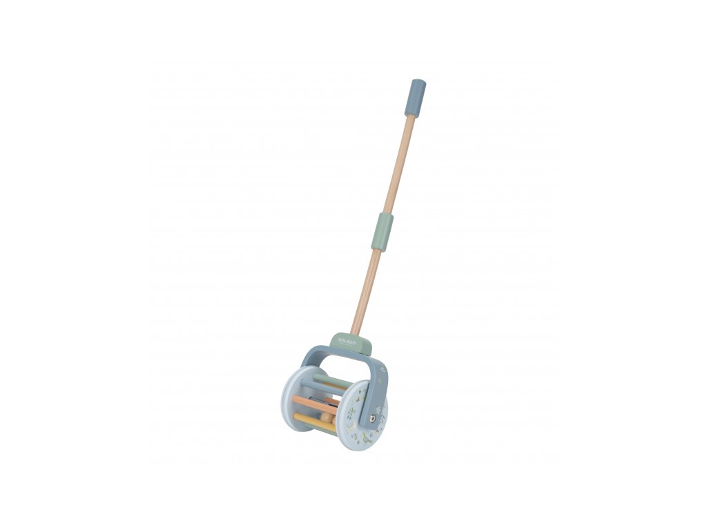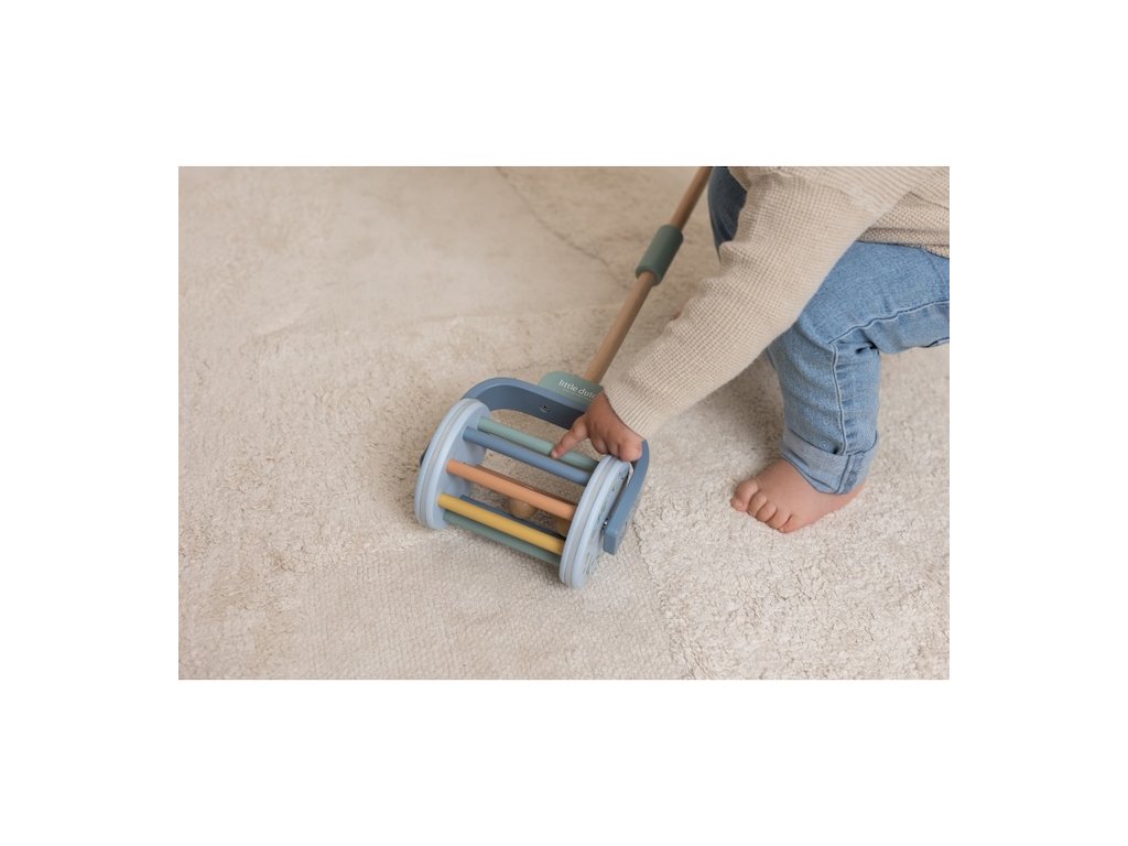 Dřevěný chrasticí váleček na tyči v krásném dřevěném provedení láká dítě, aby jej tlačilo před sebou. Míčky uvnitř válečku při pohybu chrastí, dítě je motivováno k samostatné chůzi a zároveň mu držení hračky dodává při chůzi pocit větší jistoty.