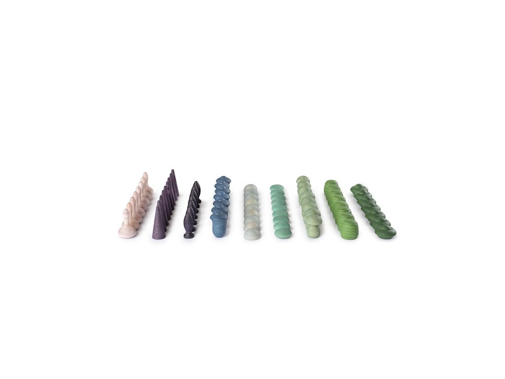 - Barevnost: 9 odstínů v chladné paletě (modrá, zelená, fialová)
