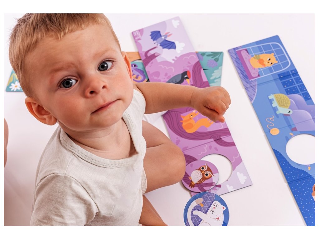 Střídejte zvířátka a pojmenovávejte je. Hra se znásobuje vkládáním kulatých dílků – děti hledají správné místo pro zvířátko a zároveň rozvíjejí jemnou motoriku, logiku i fantazii. Při použití jiných kombinací vznikají zajímavé nové souvislosti, které podporují k vyprávění nových příběhů.