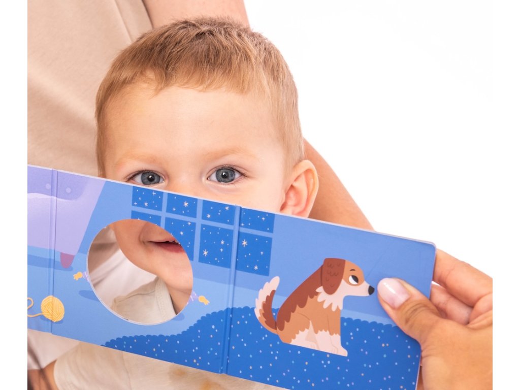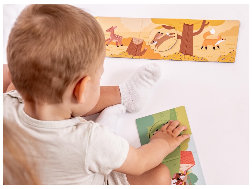 Děti nahlížejí výřezem, střídají zvířátka, přiřazují je ke správnému prostředí a vyprávějí vlastní příběhy. Díky různým kombinacím stránek vznikají nečekané průhledy a překvapení.