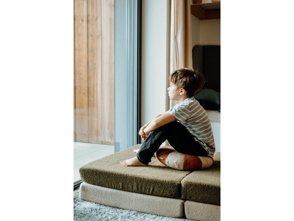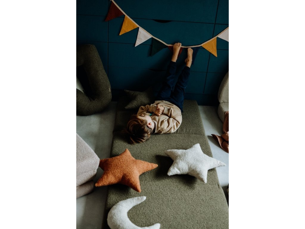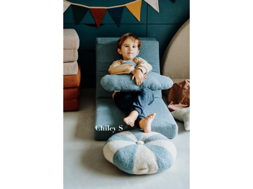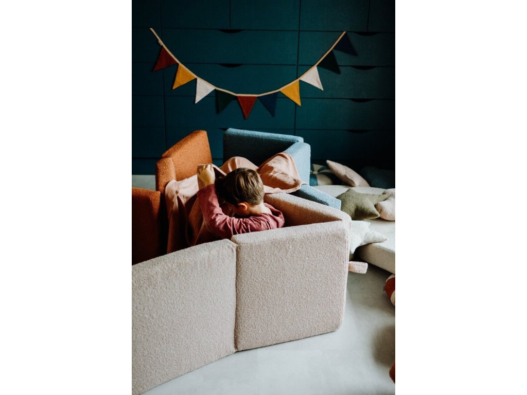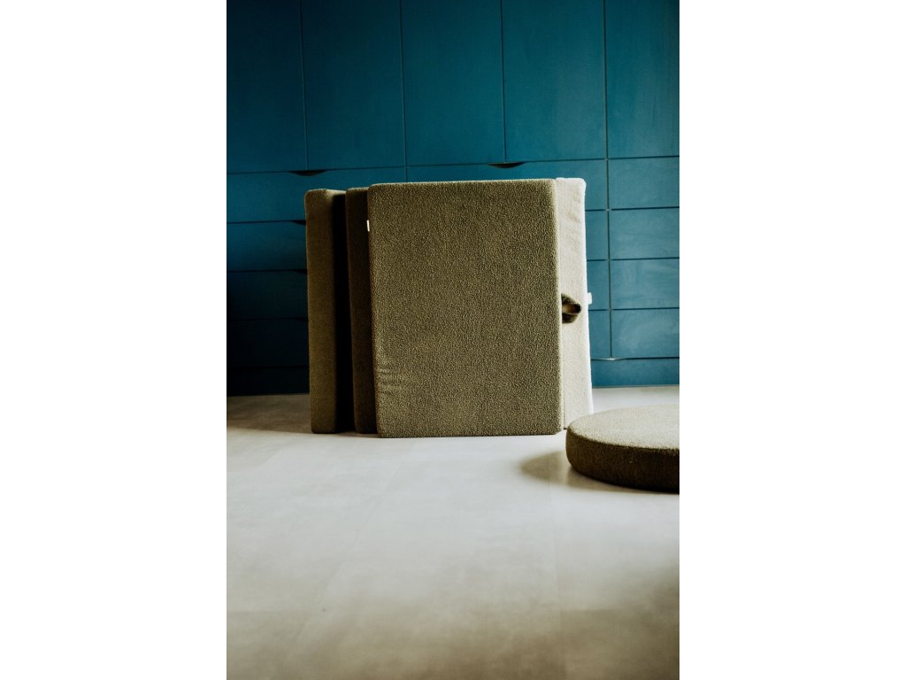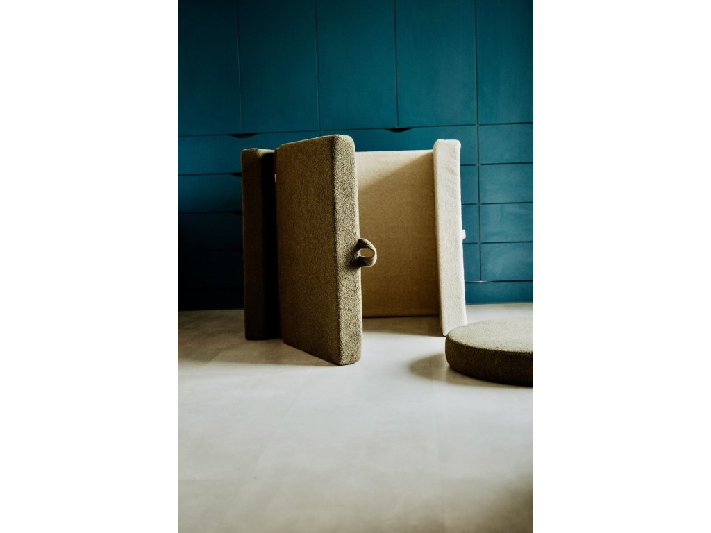 Toto posezení se skládá ze tří částí, které snadno proměníš podle potřeby — během chvilky z něj může být pohodlný taburet, rozložená matrace nebo útulné křesílko.