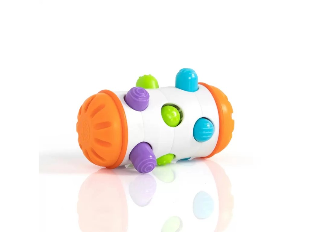 Rolio je senzorická hračka navržená pro děti od 6 měsíců, která kombinuje hmatové objevování s dynamickým pohybem. Hlavním prvkem jsou barevné texturované kolíky, které se zasouvají a vysouvají podle toho, jak se válec otáčí.