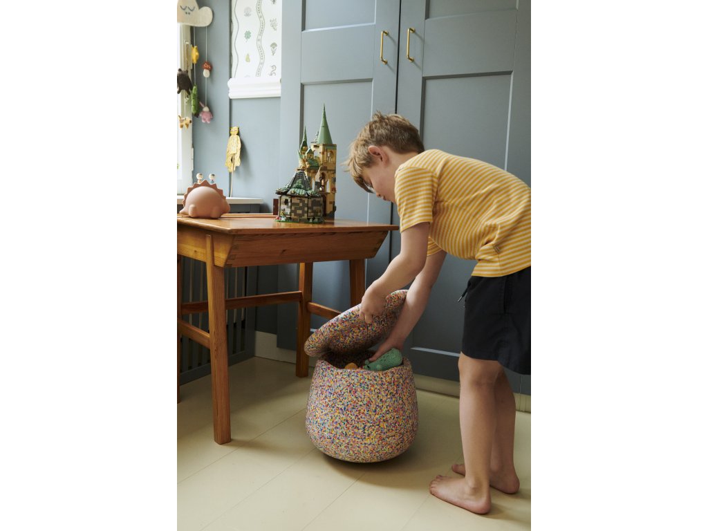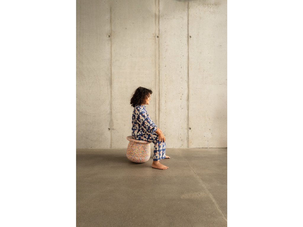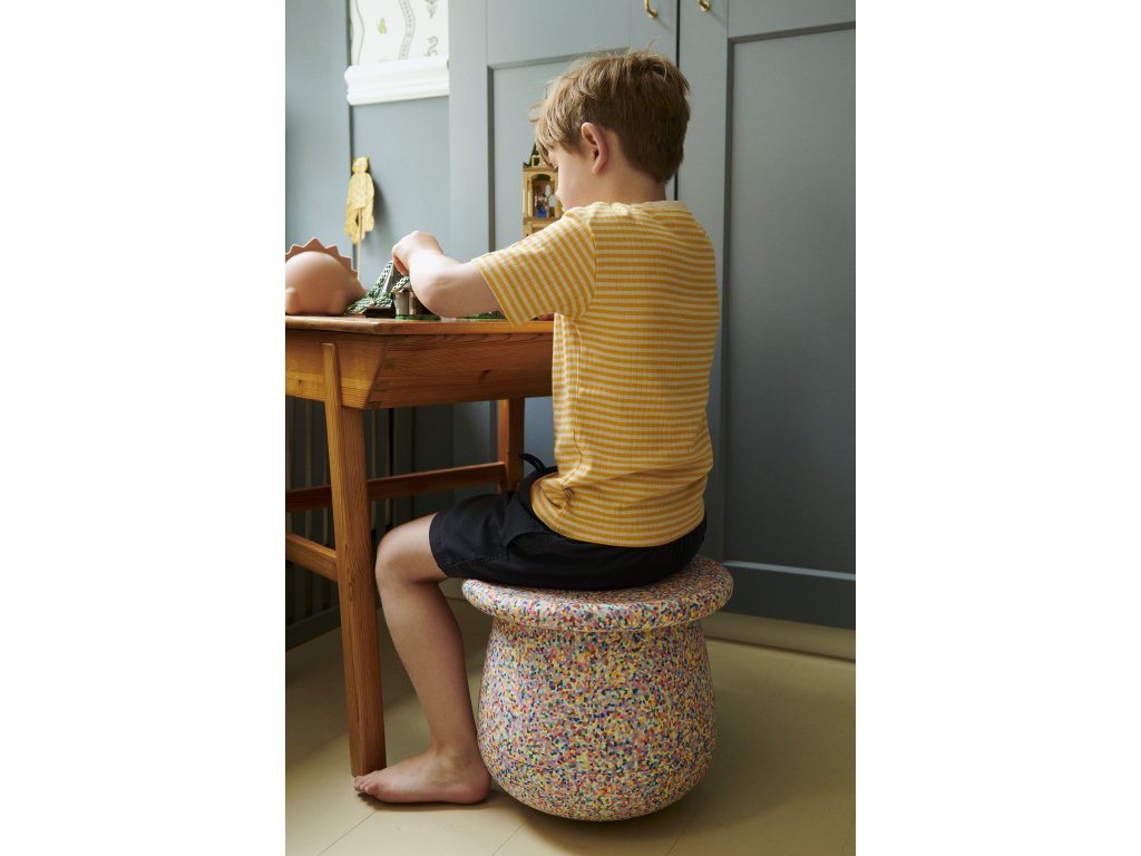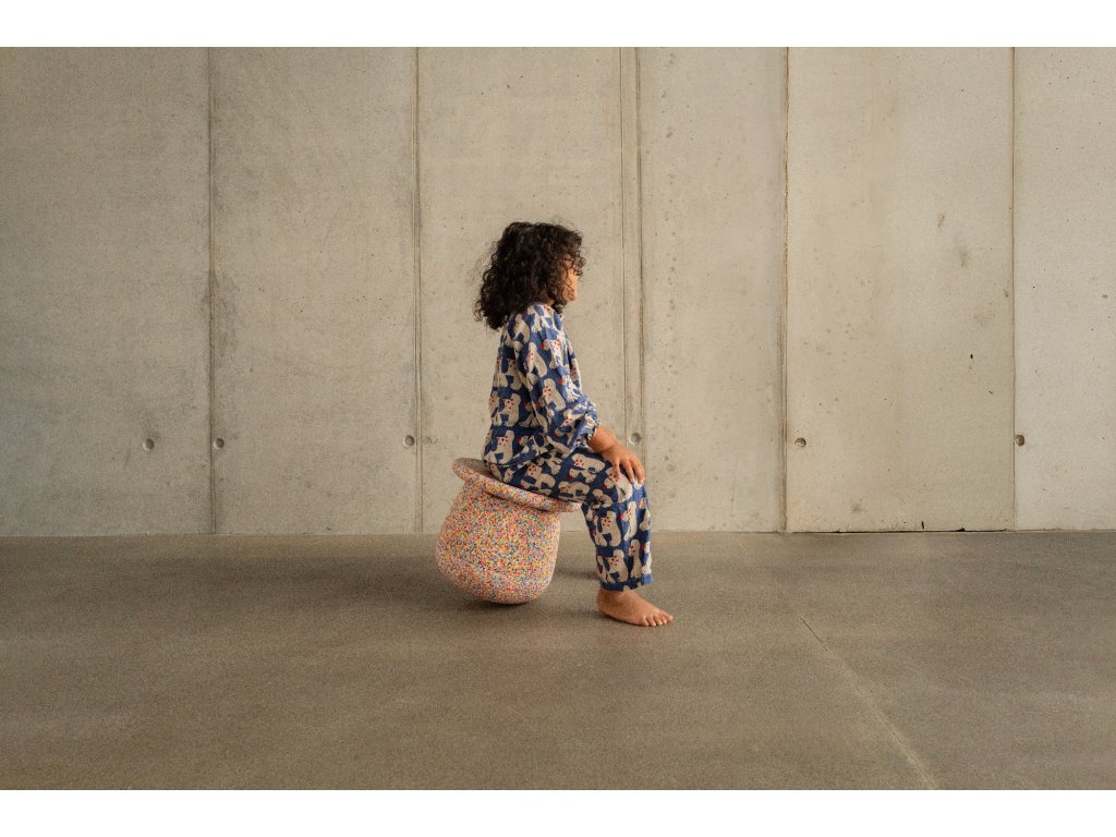 Díky široké základně je stolička odolná proti převrácení, zatímco deska, která slouží jako otočná a naklápěcí sedací plocha, přidává další zábavný prvek. Celá sestava je lehká, modulární a stohovatelná. Bez námahy se hodí do dětských pokojů, školek nebo domácích pracoven a roste s každou vývojovou fází dítěte.