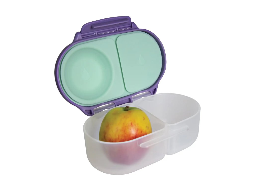 Díky flexibilnímu silikonovému víčku na jedné straně můžete do krabičky vložit celý kus ovoce (např. jablko) a do druhé třeba i jogurt nebo pyré (nikoliv tekutiny). Jednoduché otevírání umožní dětem samostatně se obsloužit.