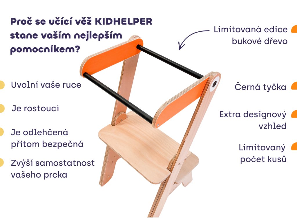 Učící věž Kidhelper je odlehčená, vzdušná a hlavně bezpečná, na kterou je radost pohledět. Nejenže vám nebude zavazet, ale stane se designovým pomocníkem do kuchyně, který poté, až děti odrostou, využijete jako bytelné schůdky. Takže pozdravujte vaše malé masterchefy a vinšujeme vám hlavně hodně zábavy!