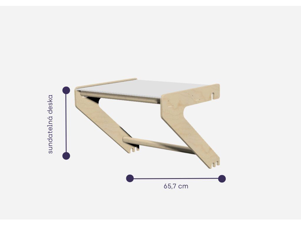 Bukové dřevo shodné kvality jako žebřiny. Jednoduše se nasazuje na horní tyč – bez vrtaní, bez nářadí. Kompatibilní výhradně se žebrřinami Šplhey Utukutu.